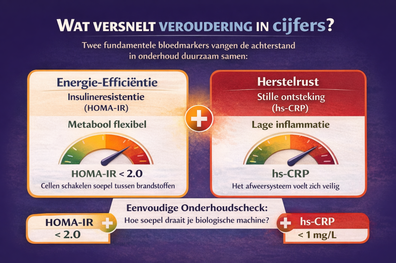 Wanneer dit vermogen afneemt — zichtbaar in een stijgende nuchtere insuline of een HOMA-IR boven 2 —